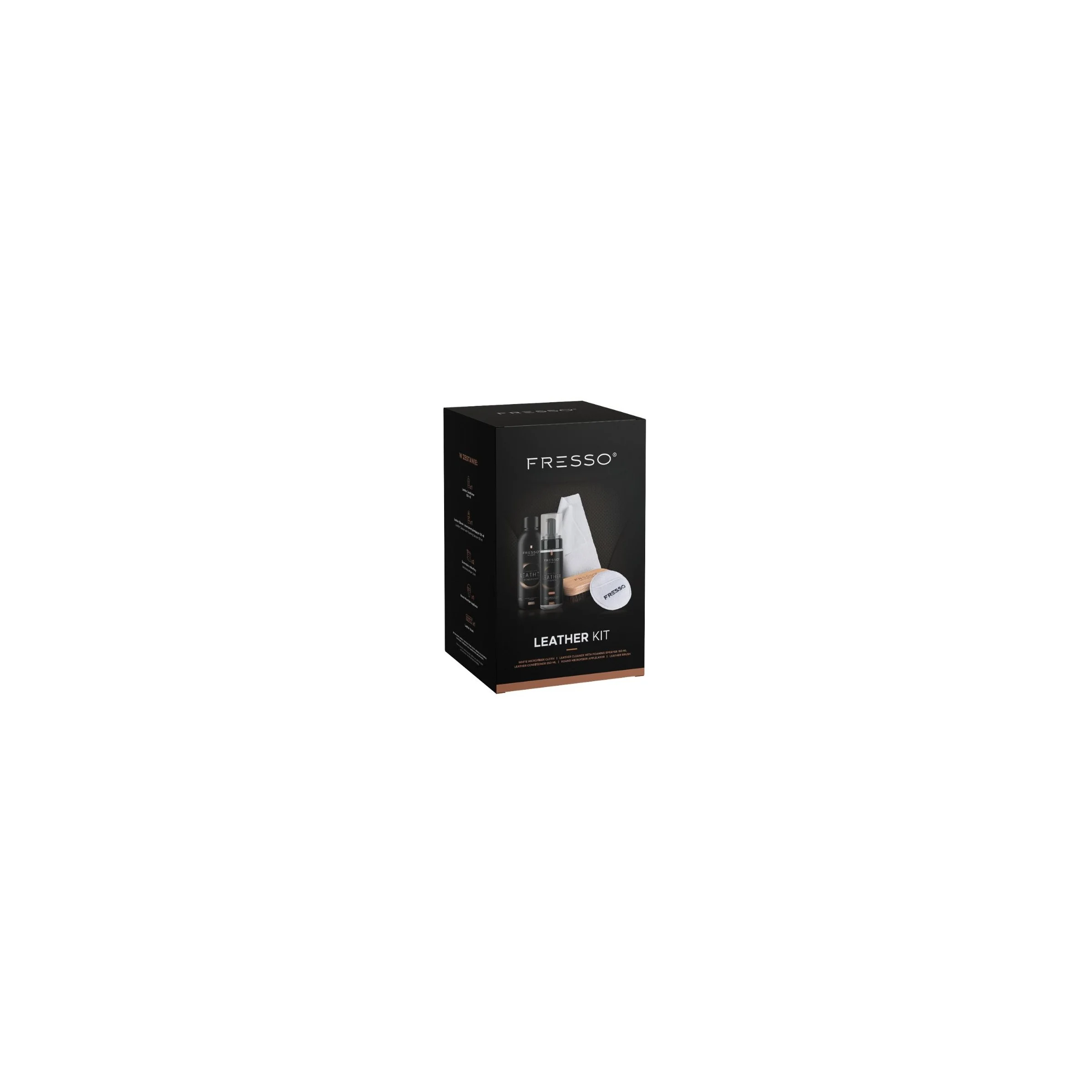 Zestaw stworzony z myślą o kompleksowej pielęgnacji skórzanej tapicerki. Zawiera wszystkie produkty niezbędne do przeprowadzenia całego procesu - od bezpiecznego i dokładnego wyczyszczenia skóry, aż po jej nawilżenie i skuteczne zabezpieczenie. Dzięki połączeniu specjalistycznych kosmetyków z dopasowanymi akcesoriami jest to kompletny, profesjonalny pakiet. Całość została zamknięta w estetycznym opakowaniu, dzięki czemu jest doskonałym pomysłem na prezent.